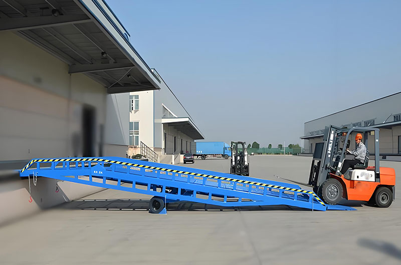 集裝箱登車橋是與叉車配合使用的貨物裝卸專用輔助設(shè)備。有了它,叉車能直接從地面駛?cè)肫囓噹麅?nèi)部進行批量裝卸作業(yè)。移動登車橋采用人工液壓動力,不需接 動力電源,只需單人操作,即可實現(xiàn)貨物的安全快速裝卸。它可使企業(yè)減少大量勞動力,成倍提高裝卸作業(yè)效率,加快貨物流通速度,獲取更大經(jīng)濟效益。